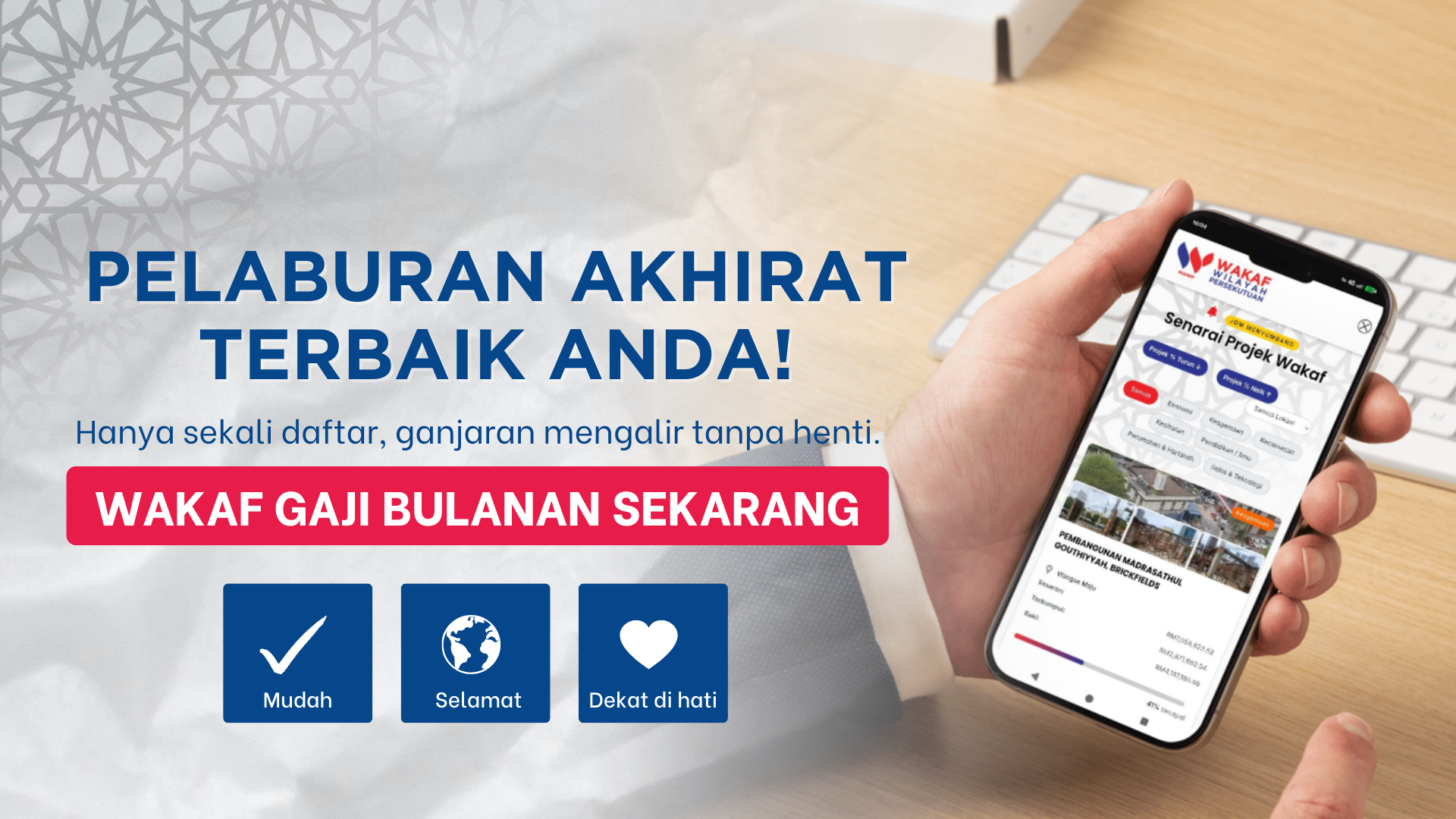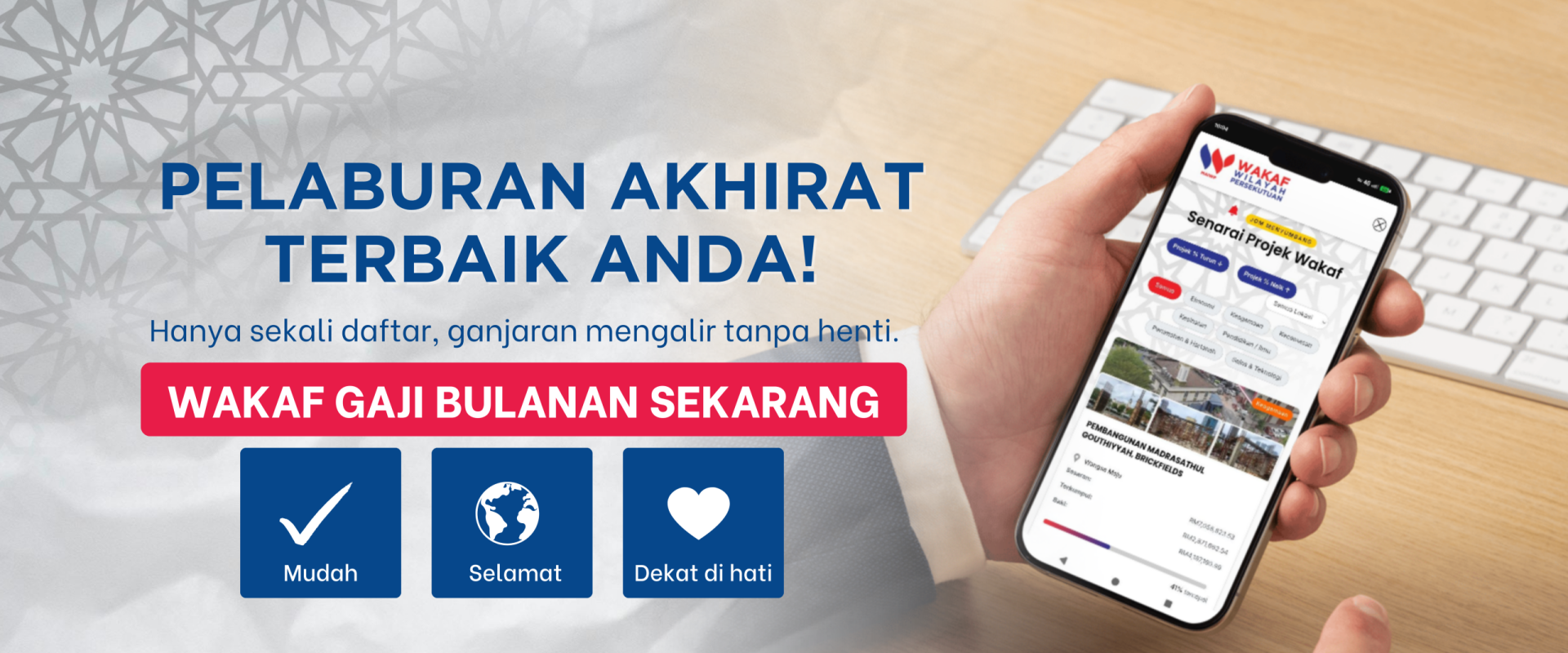 Ini bukan sekadar sumbangan, tetapi peluang emas untuk melabur dalam pahala yang akan terus mengalir meskipun kita sudah tiada di dunia ini.
