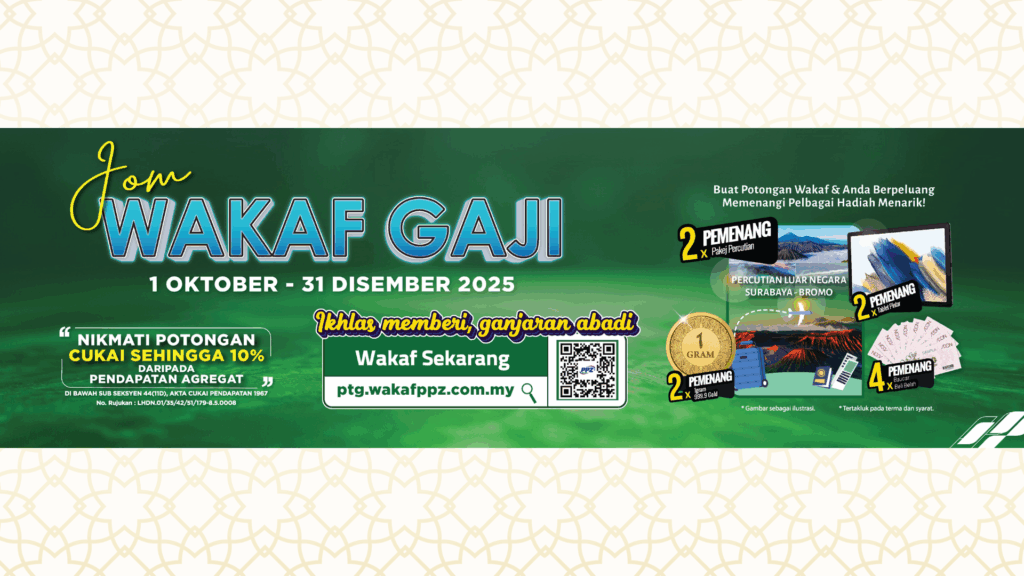 ✨ JOM WAKAF TUNAI, GANDAKAN PAHALA & MENANG HADIAH! ✨ Jangan lepaskan peluang keemasan ini! Hulurkan sumbangan wakaf anda melalui Semua Saluran PPZ bermula 1 OKTOBER hingga 31 DISEMBER 2025 dan berpeluang memenangi hadiah menarik seperti: ✈️ 1x Pakej Percutian Luar Negara (Surabaya – Bromo)!🥇 1x 1 Gram Emas 999.5 Gold!📱 1x Tablet Pintar!💰 2x […]