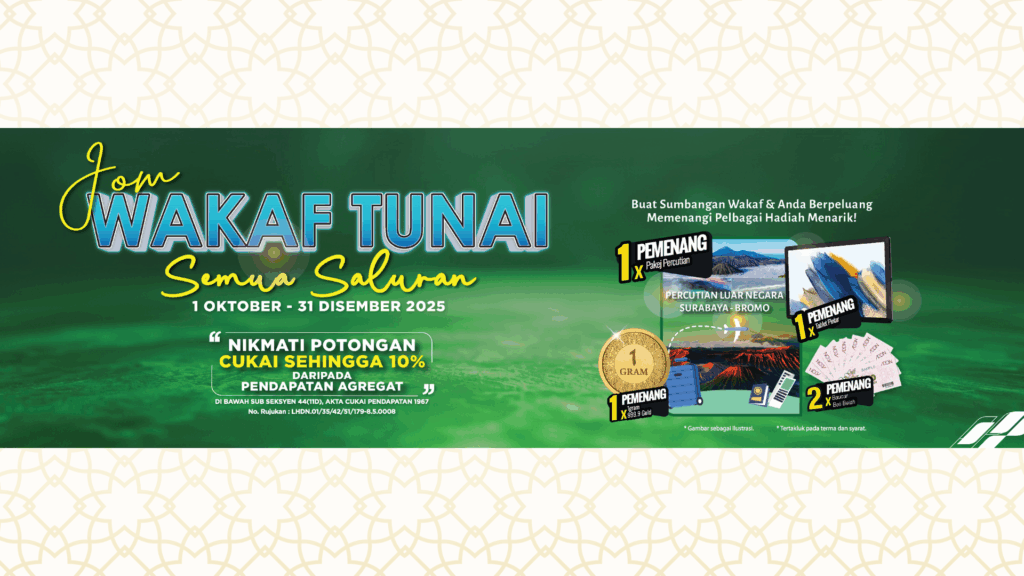 ✨ JOM WAKAF TUNAI, GANDAKAN PAHALA & MENANG HADIAH! ✨ Jangan lepaskan peluang keemasan ini! Hulurkan sumbangan wakaf anda melalui Potongan Gaji Bulanan bermula 1 OKTOBER hingga 31 DISEMBER 2025 dan berpeluang memenangi hadiah menarik seperti: ✈️ 2x Pakej Percutian Luar Negara (Surabaya – Bromo)!🥇 2x 1 Gram Emas 999.5 Gold!📱 2x Tablet Pintar!💰 4x […]