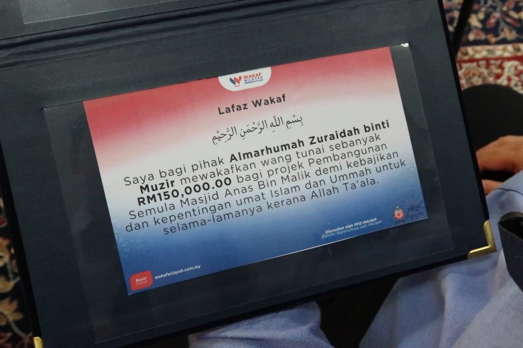 Walaupun beliau telah tiada, hasrat murninya untuk melihat Masjid Anas bin Malik tegak berdiri semula akhirnya terlaksana melalui amanah wakaf berjumlah RM150,000.